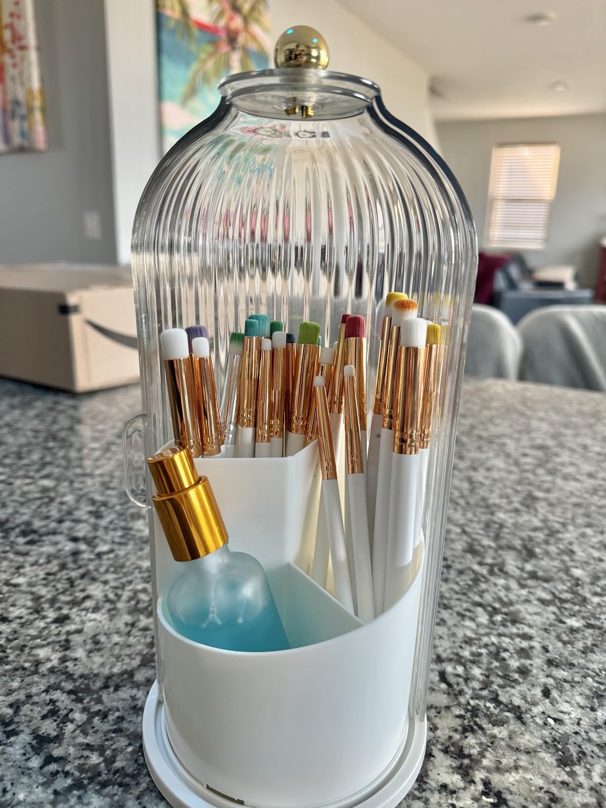- The holder's cover helps keep your brushes clean and hygienic. preventing any dirt or bacteria from accumulating on the bristles. This is especially important for those with sensitive skin or acne-prone skin.