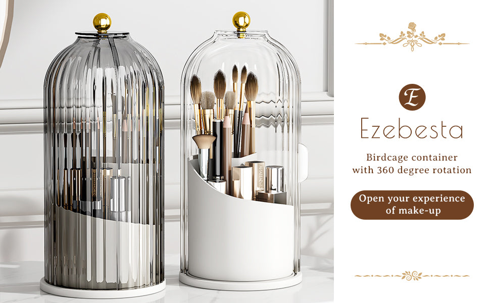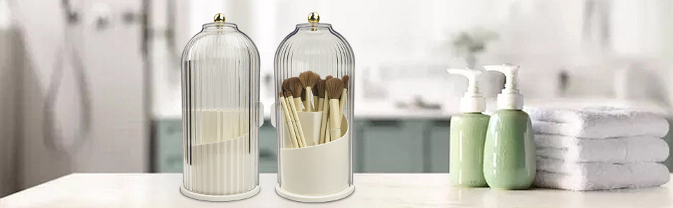 - The holder has a rotating base that spins 360 degrees. making finding the brush you need effortless. This design also makes it ideal for use in small spaces or in crowded vanities.