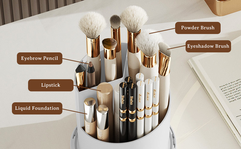 With a simple swirl. effortlessly access all your brushes while keeping them impeccably organized. The 360° Rotating Brush Holder streamlines your beauty routine. offering both convenience and tidiness in one elegant solution.