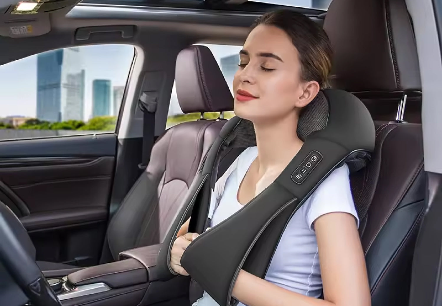 With adjustable heat therapy and customizable intensity settings, the Neck And Shoulder Massager fits seamlessly into your busy schedule. Enjoy therapeutic relief during your commute, lunch break, or while relaxing in your hotel room.