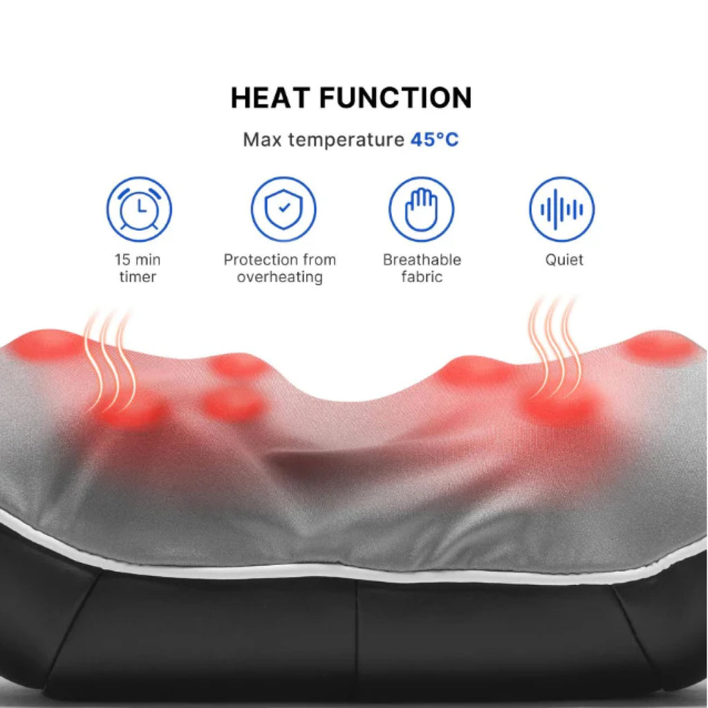 Built with a heating function to further massage fatigued muscles and reduce stress. Very safe to use. (Can be turned off manually)