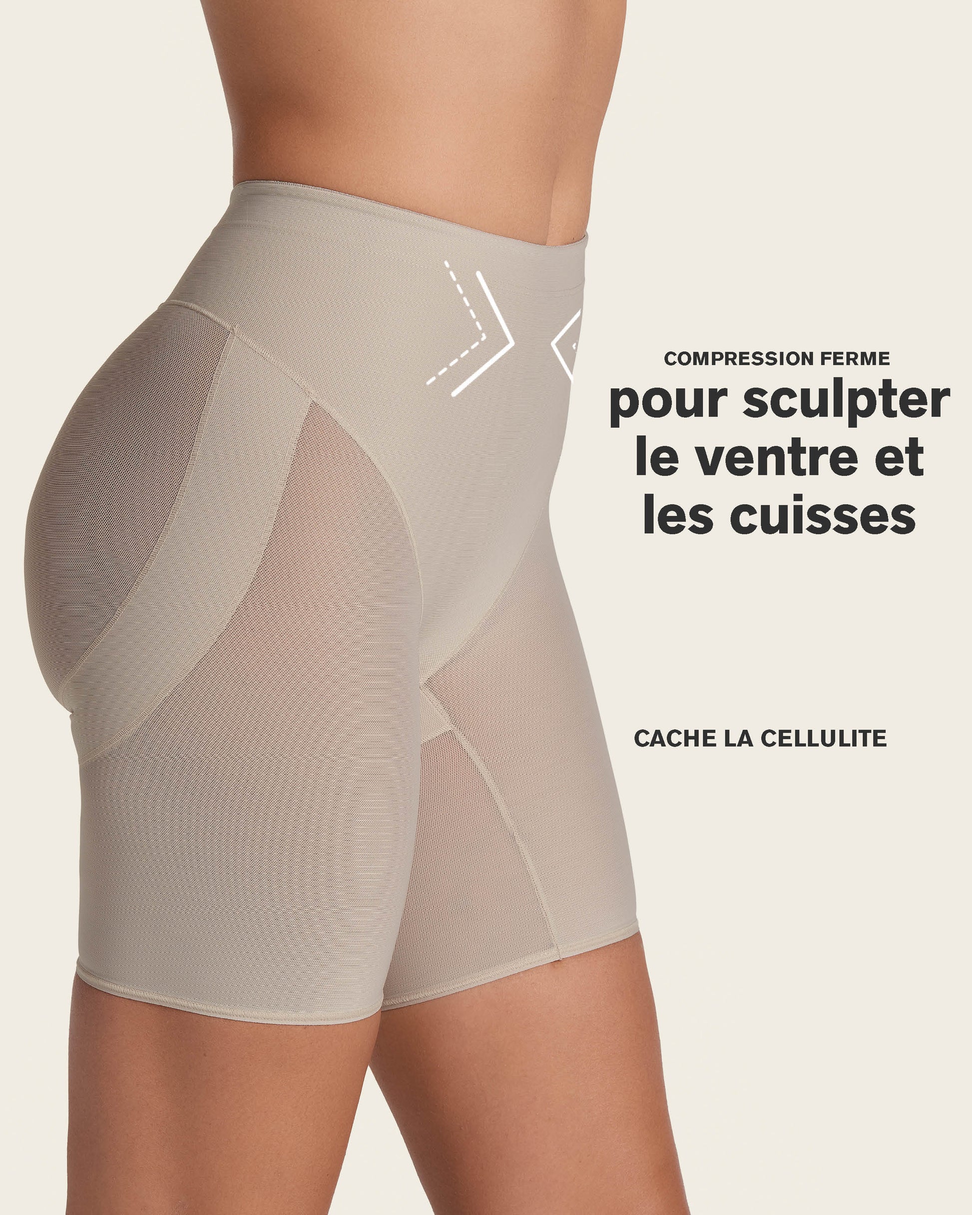This firm compression shaper short is made of our signature PowerSlim fabric + DuraFit to sculpt your tummy. waist. and thighs. Our high-tech MagicUp butt lifter bands work together with a ruched center seam and lighter fabric for a butt-lifting effect. Super-flat leg bands don't ride up or roll up. The short bottom also prevents chafing under skirts and dresses. Get yours and see the difference. naturally!