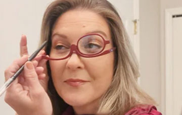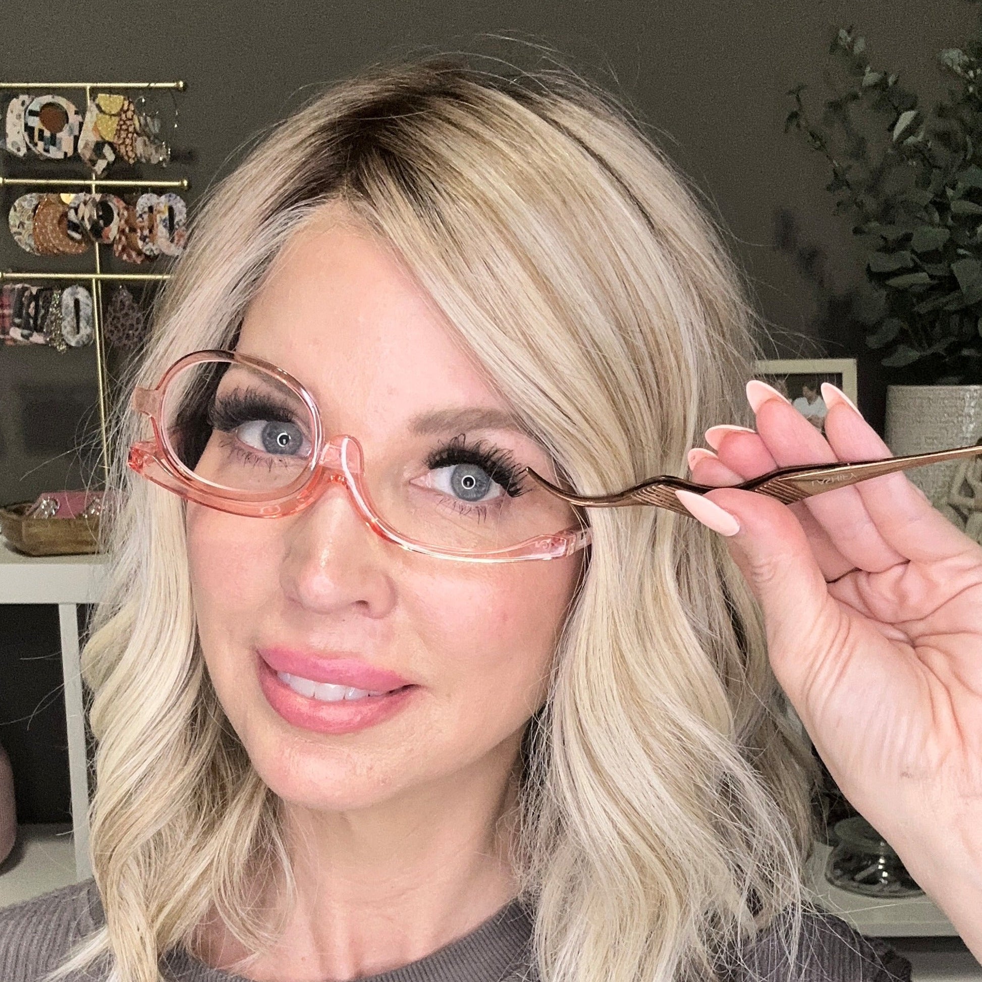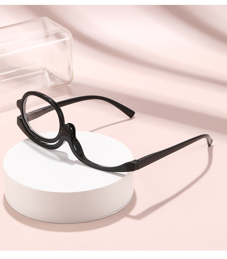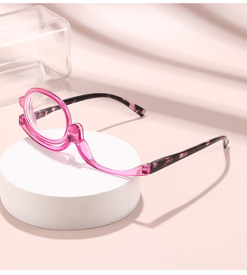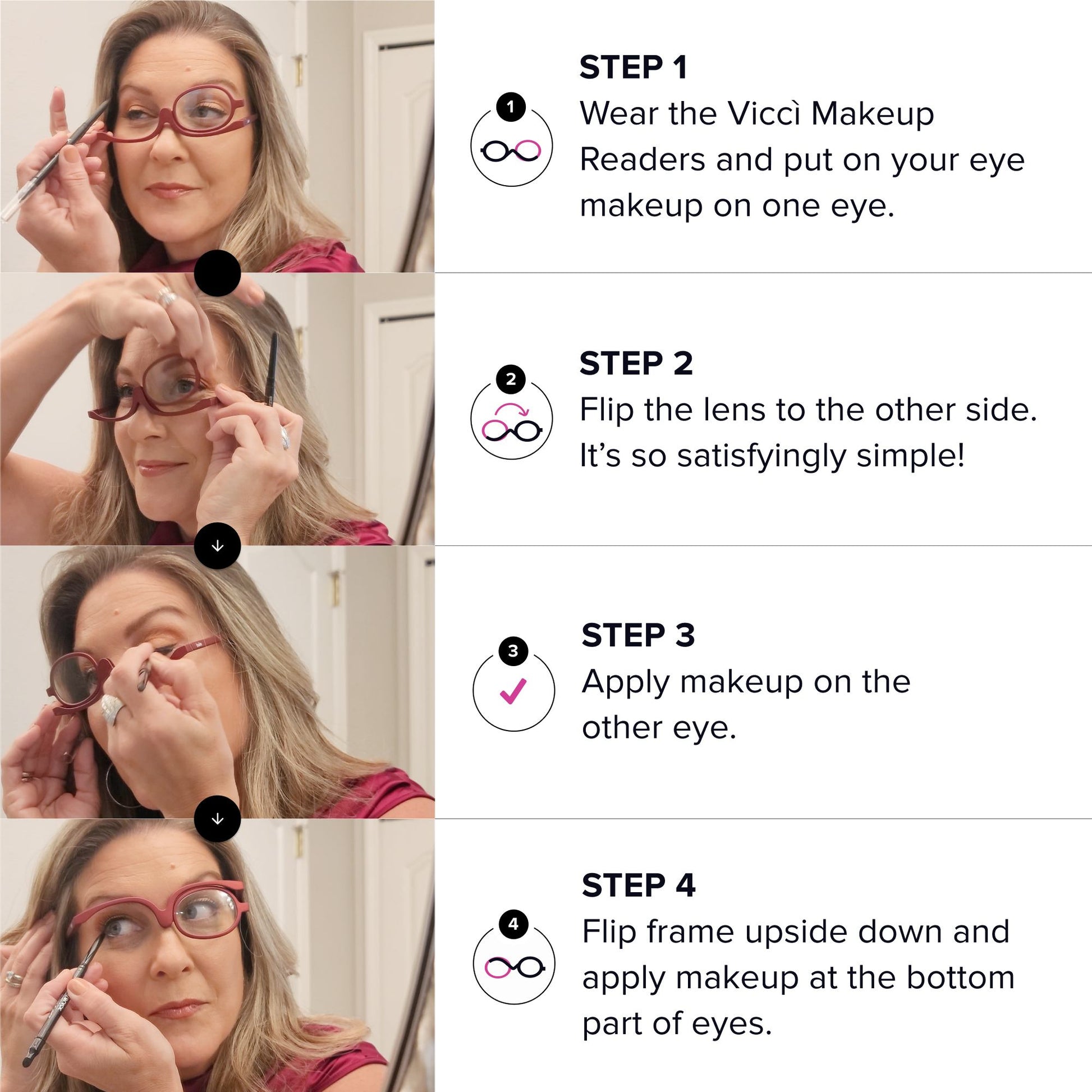 Simply wear the makeup readers like your normal glasses and do your eye makeup on one side. Then, flip the lens to the other eye to finish your look.