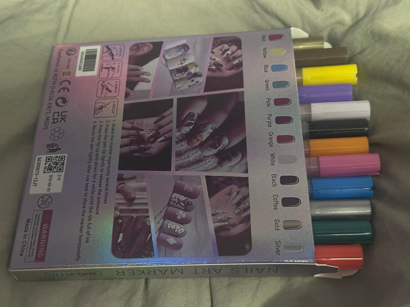 Set Contents: 12-Color Nail Art Pen Assortment, Covering Bold, Vibrant Opaque Colors.