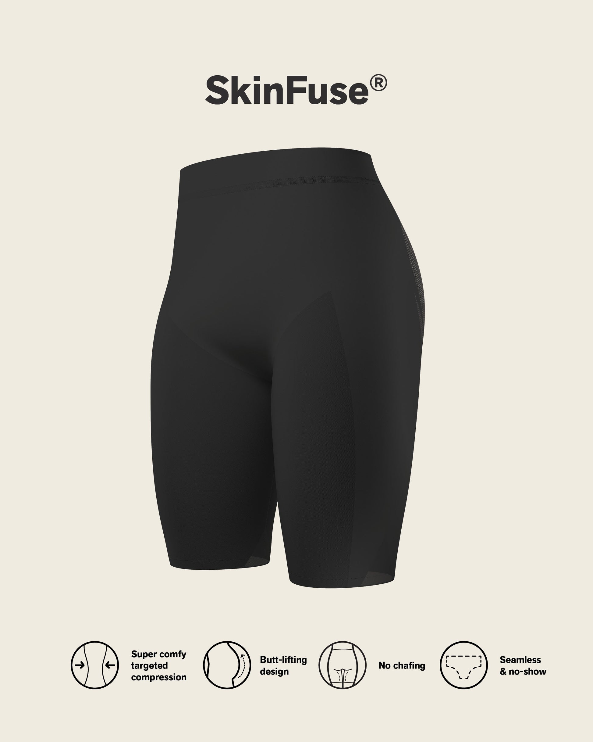 They'll see the effect. but they won't see the shaper! This invisible shaper short is made with our trademark ultra-light SkinFuse fabric to smooth out your curves. We use targeted compression to slim where it counts: this shaper is specially designed to revamp your tummy. waist. hips. and thighs. but the backside is made with sheer mesh to avoid flattening. Plus. we added butt lifter bands to give your cheeks an extra boost.