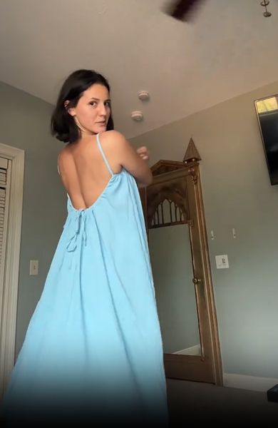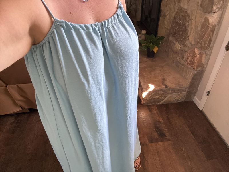 I love this dress! Super comfy, very loose fitting, yet also sexy with the backless feature. Love that it’s adjustable. I would order to size since it’s baggy. I’m wearing a size Small & am 5’4”, 125lbs. Also, it looks amazing in photos—perfect for shooting outside!